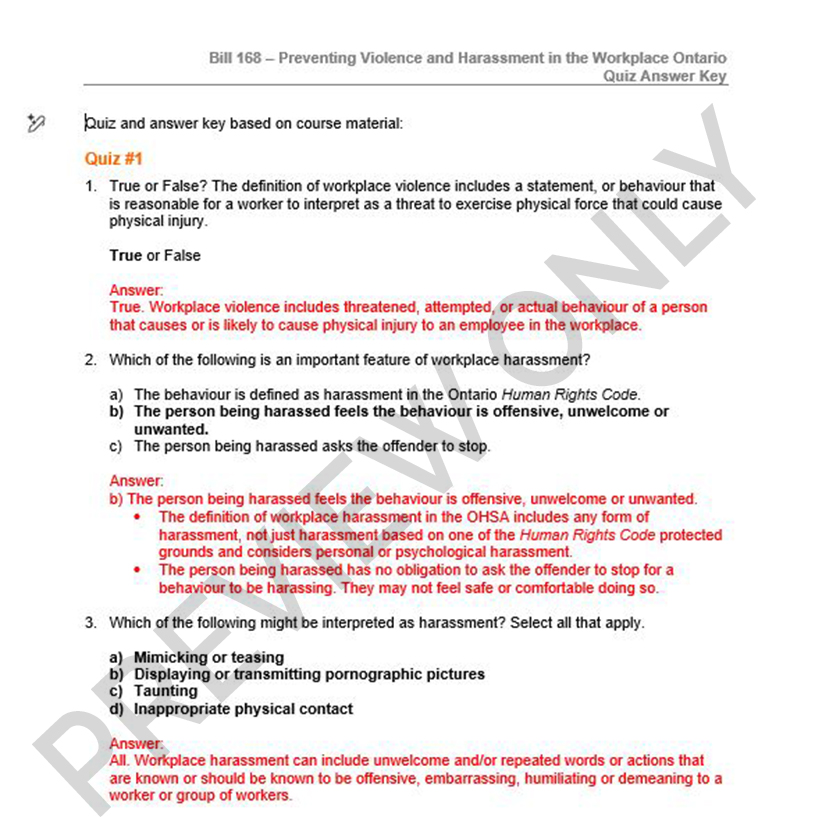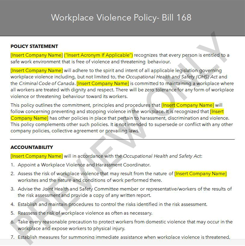 - Aligns with Ontario’s Bill 168 requirements