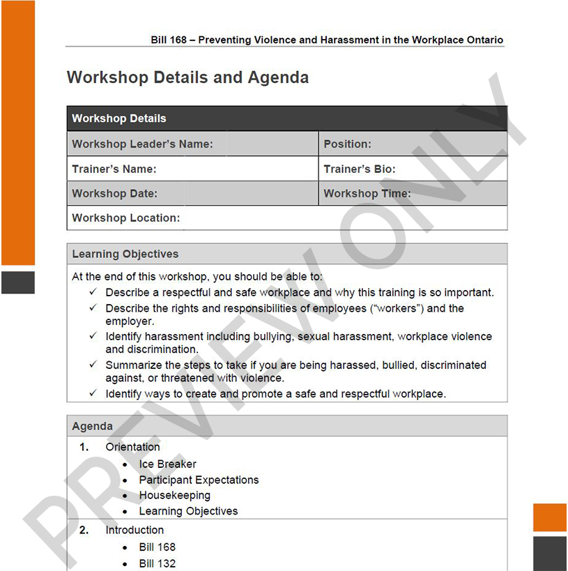 Our comprehensive package gives facilitators everything they need to confidently lead workplace training sessions aligned with Ontario legislation.